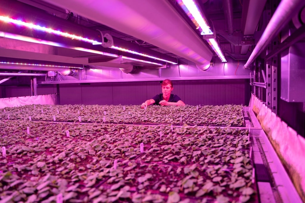 With the deployment of our “vertical farming” facility, Iribov is able to grow over 30 crops over four different growing layers. Besides the fact that multilayer cultivation saves greenhouse space and allows efficient use of already limited agricultural land, plants can grow up here under fully automated and optimized conditions. The constant and controlled conditions of the vertical farm enable more cycles per year.